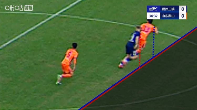11月22日讯 中超第30轮,武汉三镇主场对阵山东泰山,比赛第30分钟,图多列接长传直入禁区抢射破门,裁判经VAR说明判越位。