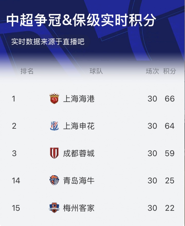 11月22日讯 中超收官战8场同期打响。当今海港1-0英博,申花2-0津门虎。