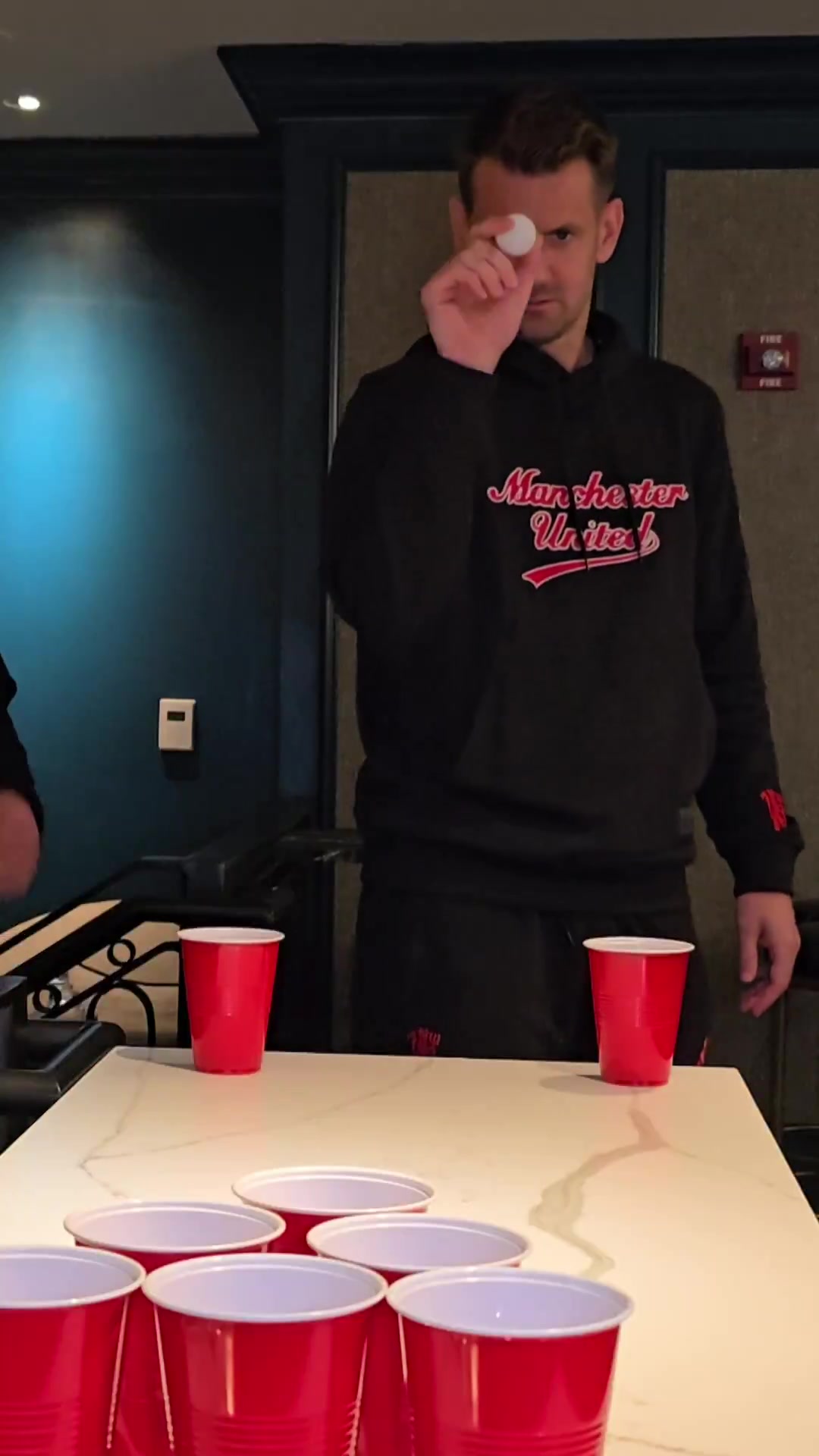 曼联官方晒球员玩小游戏视频,将乒乓球投进杯子&都尔克泽神准