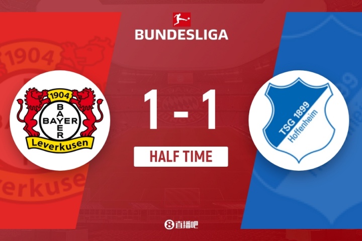 上半场补时4分钟,勒沃库森1-1霍芬海姆。