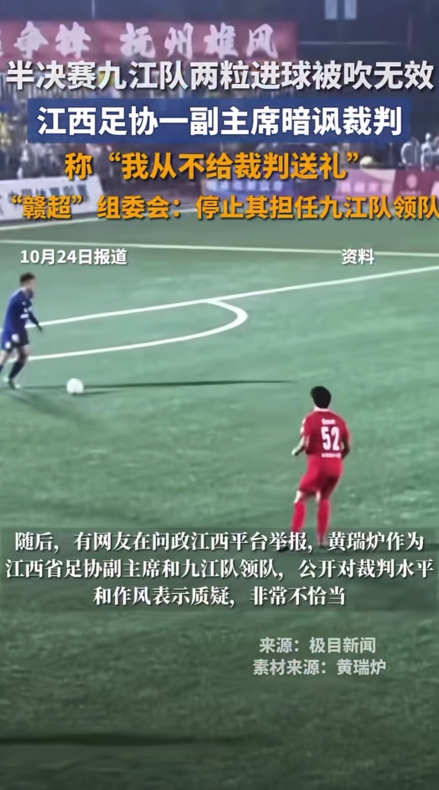 赣超半决赛赛后炮轰裁判,江西省足协副主席、九江队领队被处罚
