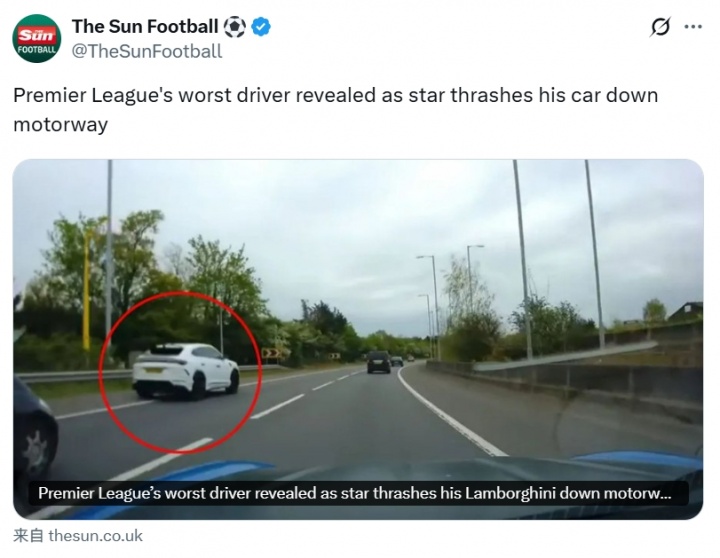 救急车说念超车!W-福法纳再次违规驾驶,被冠“英超最差司机”称呼