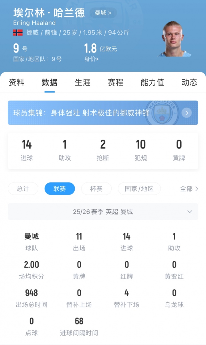 本赛季哈兰德在曼城和挪威国度队的进球数还是达到了30个,而当今只是才11月份,哈兰德本赛季最终约略打入若干球值得期待。