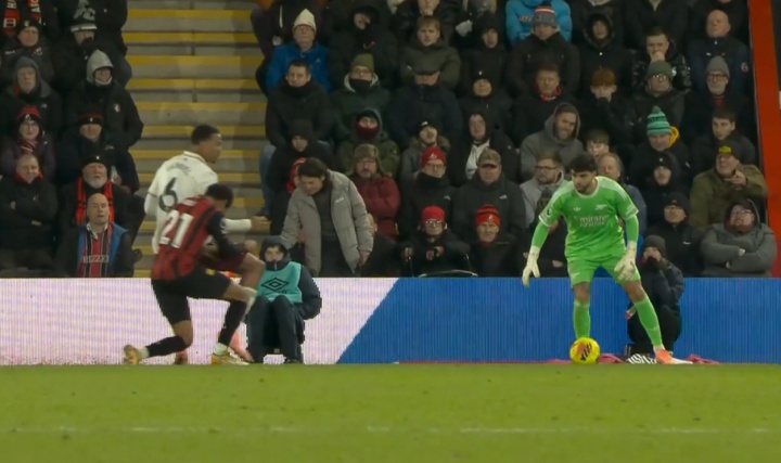 01月04日讯 英超第20轮,阿森纳客战伯恩茅斯,第94分钟,阿德利上抢加布里埃尔,用头撞加布里埃尔肘部,随后在阿森纳禁区倒地!