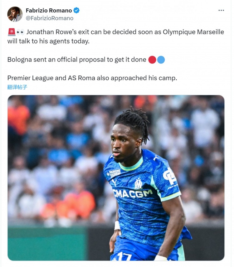 罗马诺:博洛尼亚报价马赛边锋洛维,罗马和英超球队也与球员筹议