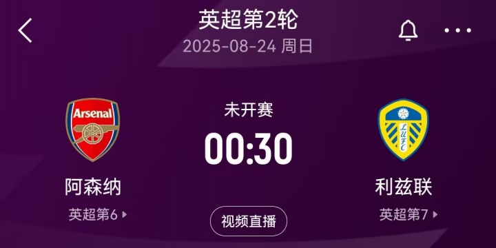 北京时刻8月24日0:30,阿森纳将在英超第2轮中主场迎战利兹联。