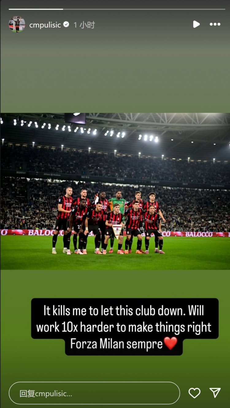 普利西奇社媒晒出首发球员赛前的合照,并写谈:“让俱乐部失望令我痛彻情愫,我会付出十倍奋勉来弥补一切,米兰恒久加油!”