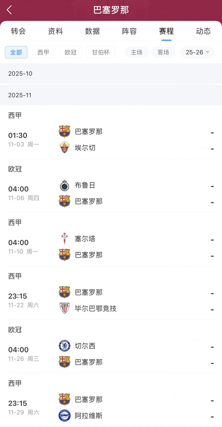 巴萨后续赛程↓