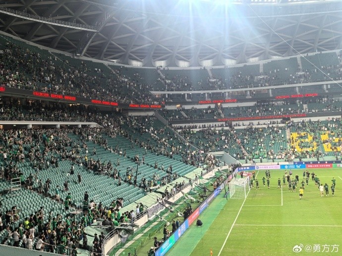 中超第19轮,国安主场2-2战平津门虎遇到3轮不堪,积分榜上,国安积39分暂列第四位,落伍榜首6分。博主“勇方方”晒照,赛后,北看台提前退场圮绝谢场。