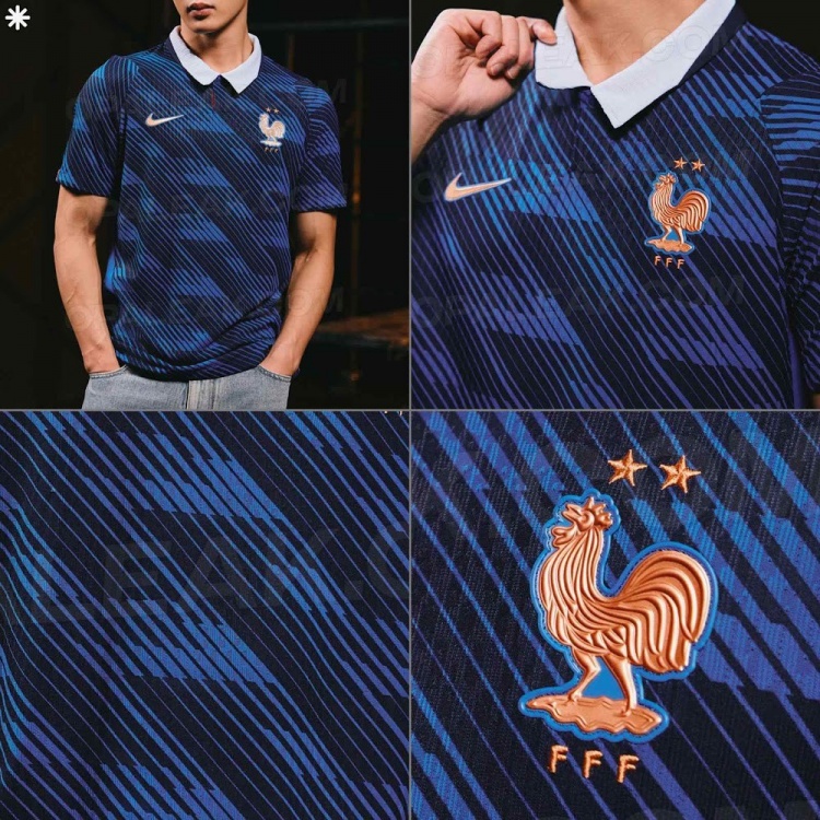 法国寰宇杯主场球衣谍照:配色灵感源于解放女神像,带Polo领