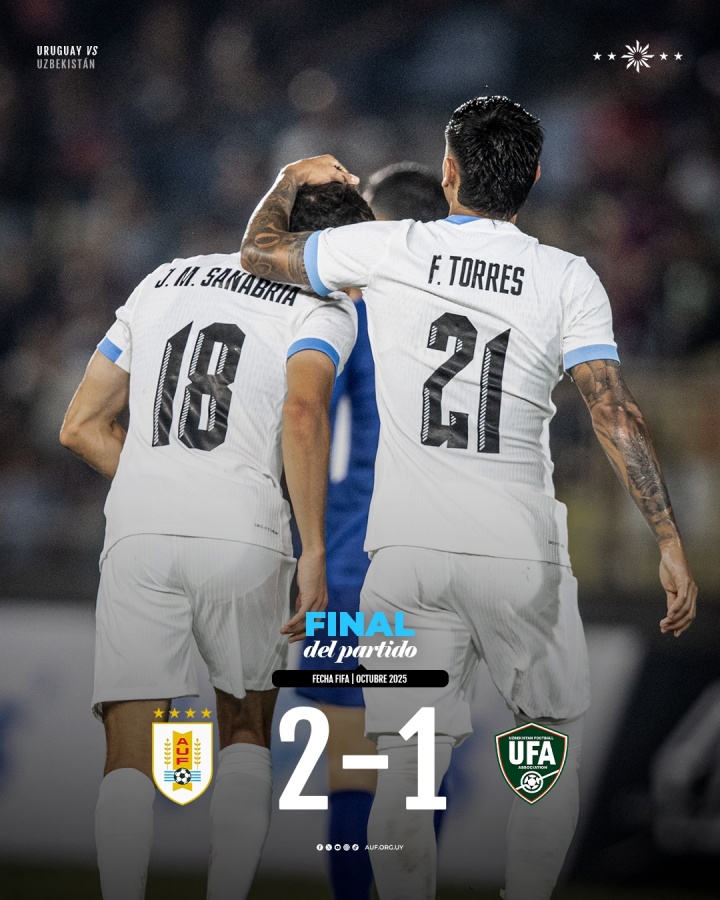 10月13日讯 在刚刚要领的海外友谊赛中,多名主力缺席的乌拉圭2-1征服乌兹别克斯坦,托雷斯、马努埃尔立功,吉亚扳回一球。乌兹别克斯坦新帅卡纳瓦罗无缘上任2连胜。