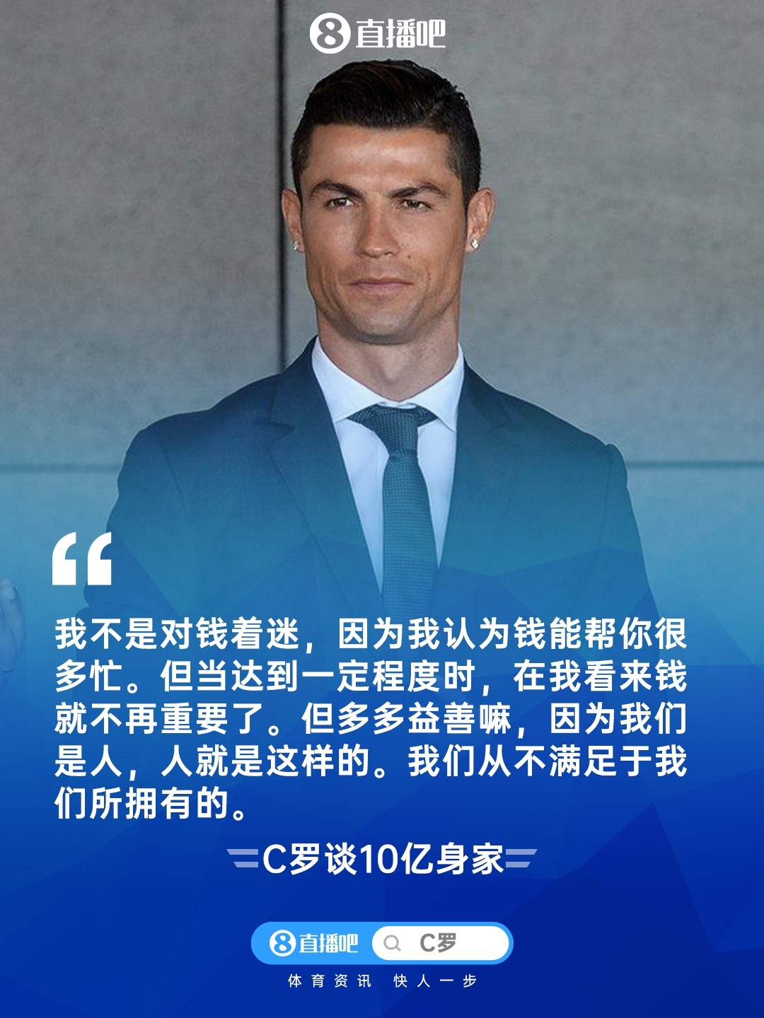 不在乎钱罗总裁🤑C罗:10亿刀身家?到了一定进度钱就不紧迫了