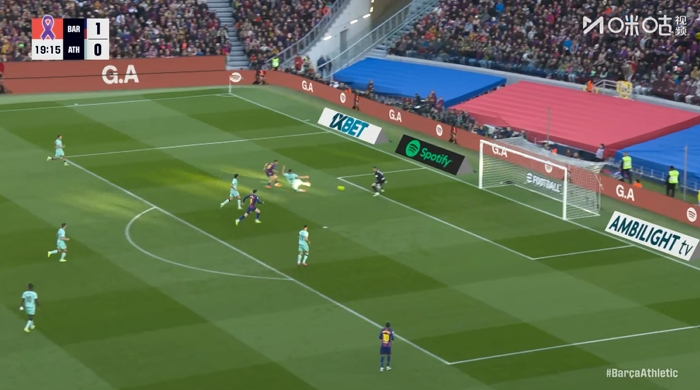 11月22日讯 西甲第13轮,巴萨对阵毕尔巴鄂。20分钟,巴尔德挑传,费尔明单刀契机射门被扑,奥尔莫补射偏出。