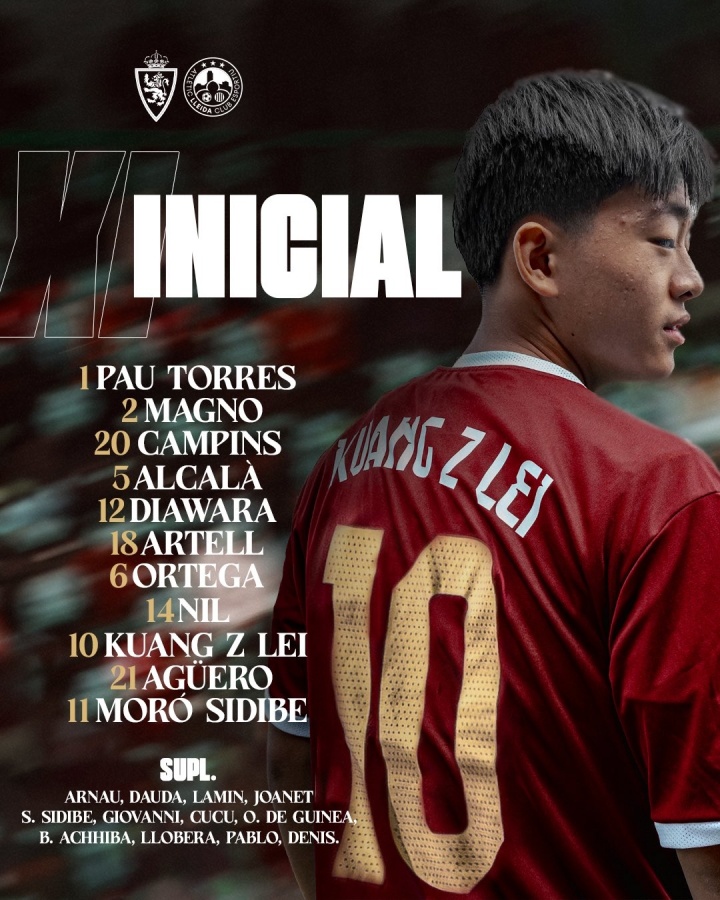 16岁邝兆镭今夏加盟西协乙球队莱里达竞技,在球队今天与萨拉戈萨霸术队的季前赛中,邝兆镭身披10号球衣首发出战。