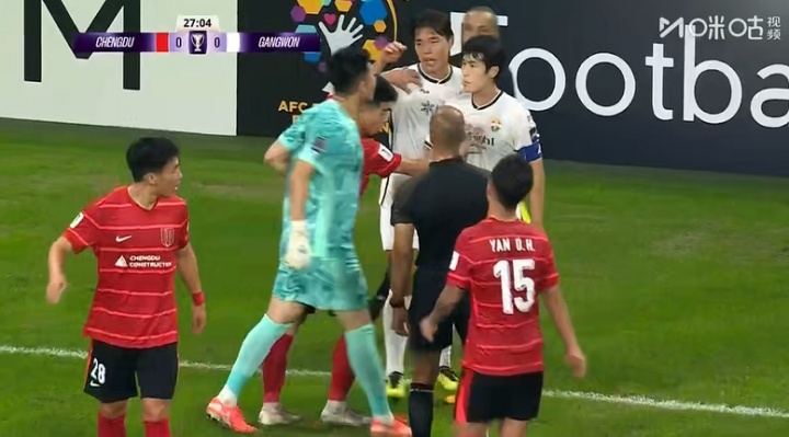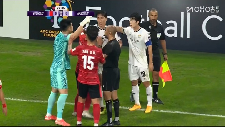 09月30日讯 蓉城vs江原第27分钟,古尔芬克尔突围后遭江原球员金谈现“掏裆”,前者横祸倒地,两边也就此产生小界限打破。
