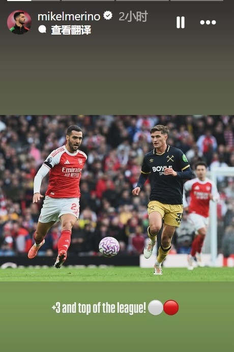 10月5日讯 在阿森纳2-0打败西汉姆联后,梅里诺更新了酬酢媒体。