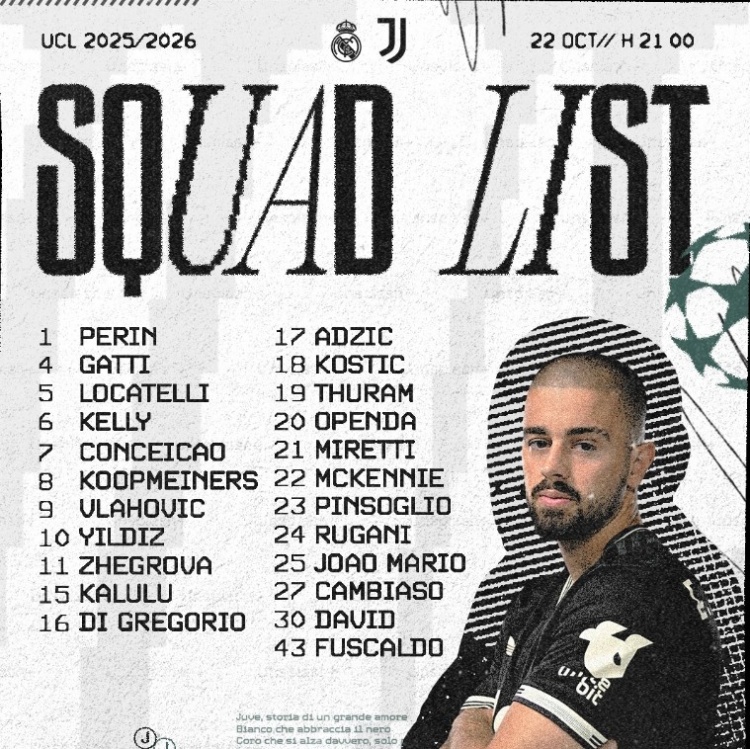 尤文客战皇马名单:伊尔迪兹在列,米雷蒂、热格罗瓦总结