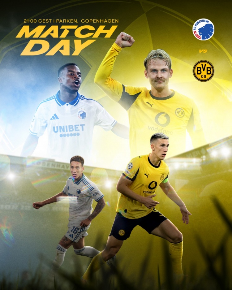 赛前,多特蒙德为此役发布海报,海报中布兰特、施洛特贝克、穆科科、罗伯特四东说念主在列。并配文写说念:继续在欧冠赛场保捏朝上地位:在哥本哈根必须拿下三分!👊
