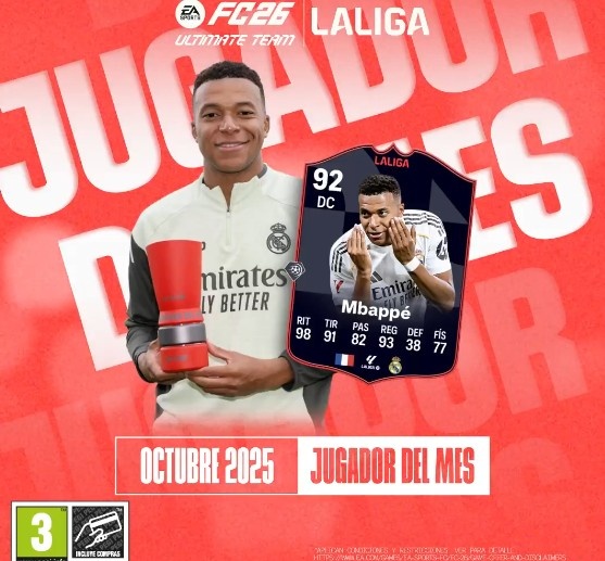 齐集第2个月当选!西甲官方:姆巴佩当选10月联赛最好球员