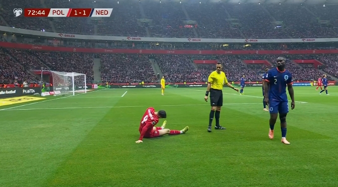 11月15日讯 波兰vs荷兰第74分钟,莱万在争抢时受伤,平直坐下了,但暂时莫得换东谈主。