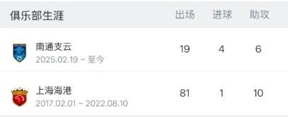 本年年头,陈彬彬离开上海海港,目田身加盟南通支云。2025赛季于今,陈彬彬照旧代表南通支云出战19场比赛,打进4球。