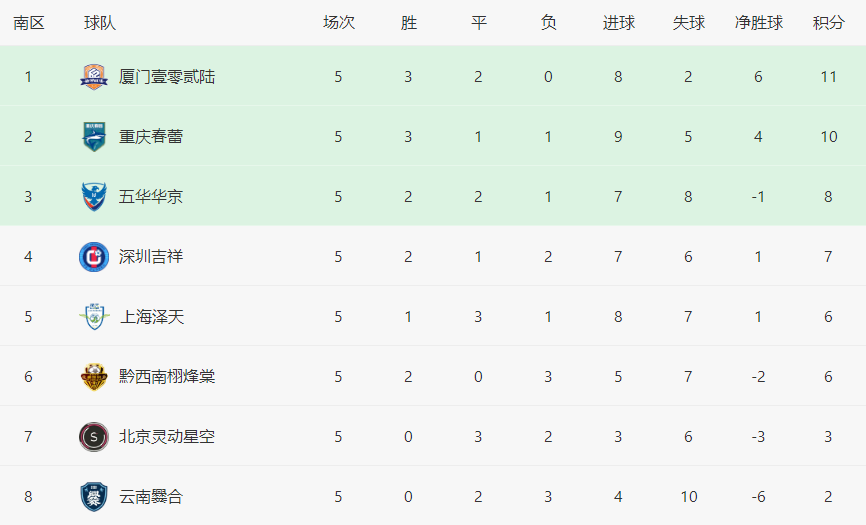 南区方面,厦门壹零贰陆遭逢两连平之后,积11分,仍领跑积分榜,但前启航点伐放缓,被重庆春蕾追悼仅差1分。